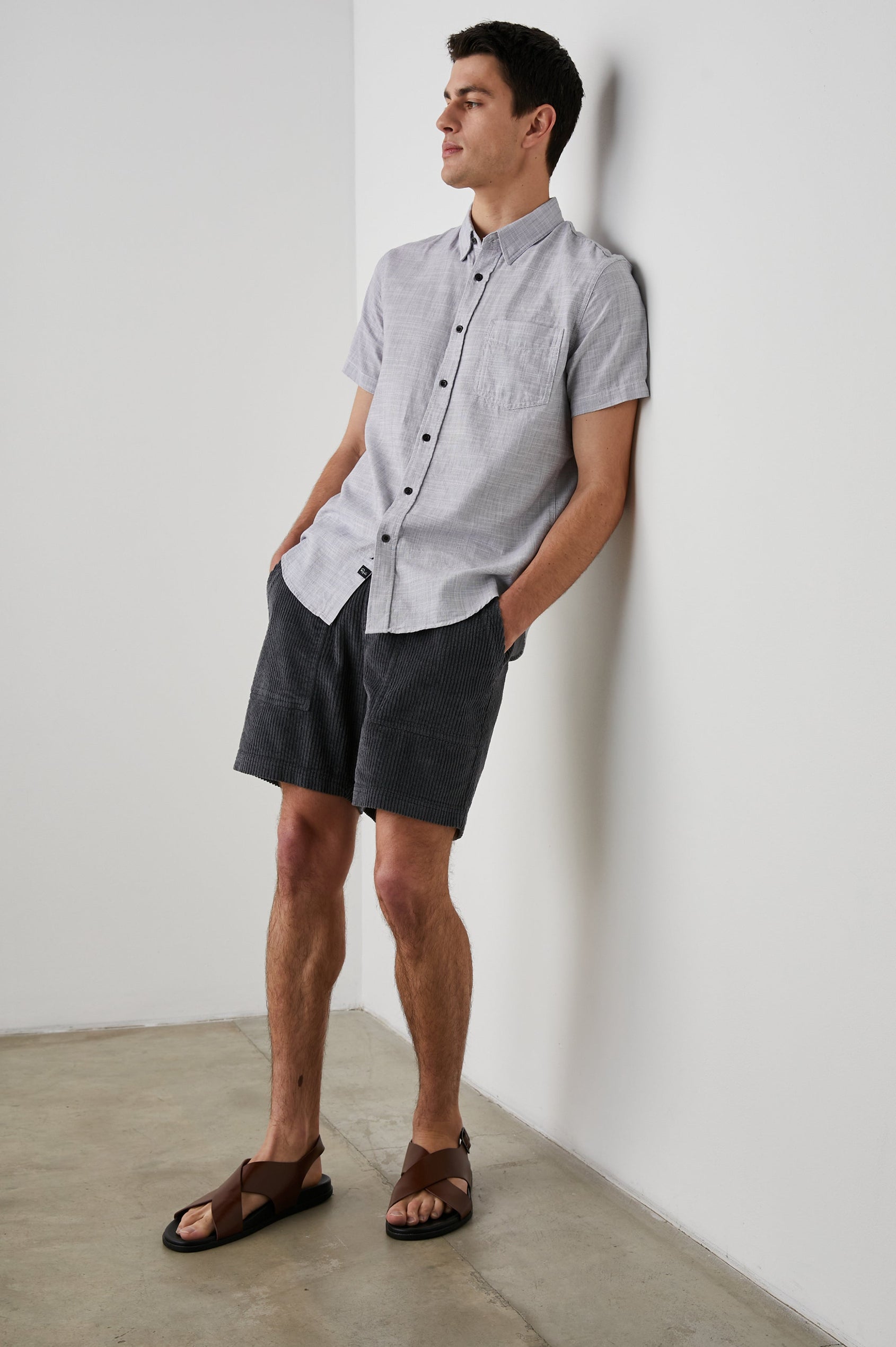 FAIRFAX SHIRT MEDITERRANEAN FORAGE - FRONT BODY HAND IN POCKETS